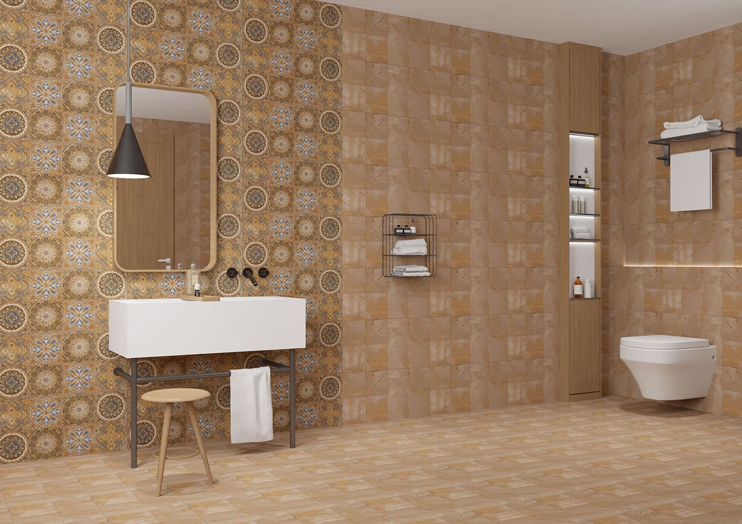 Bathrooms: The water resistance and slip resistance of ceramic tiles make them ideal for bathroom floors and walls.